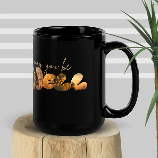 Inspirational Ceramic Mug with Black, Glossy Finish 'May You Be Well - Good Wishes'