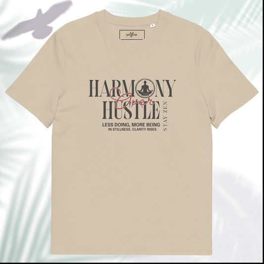 Unisex Organic Cotton T-Shirt - Eco-Friendly Minimalist Sustainable Tee 'Harmony Over Hustle'